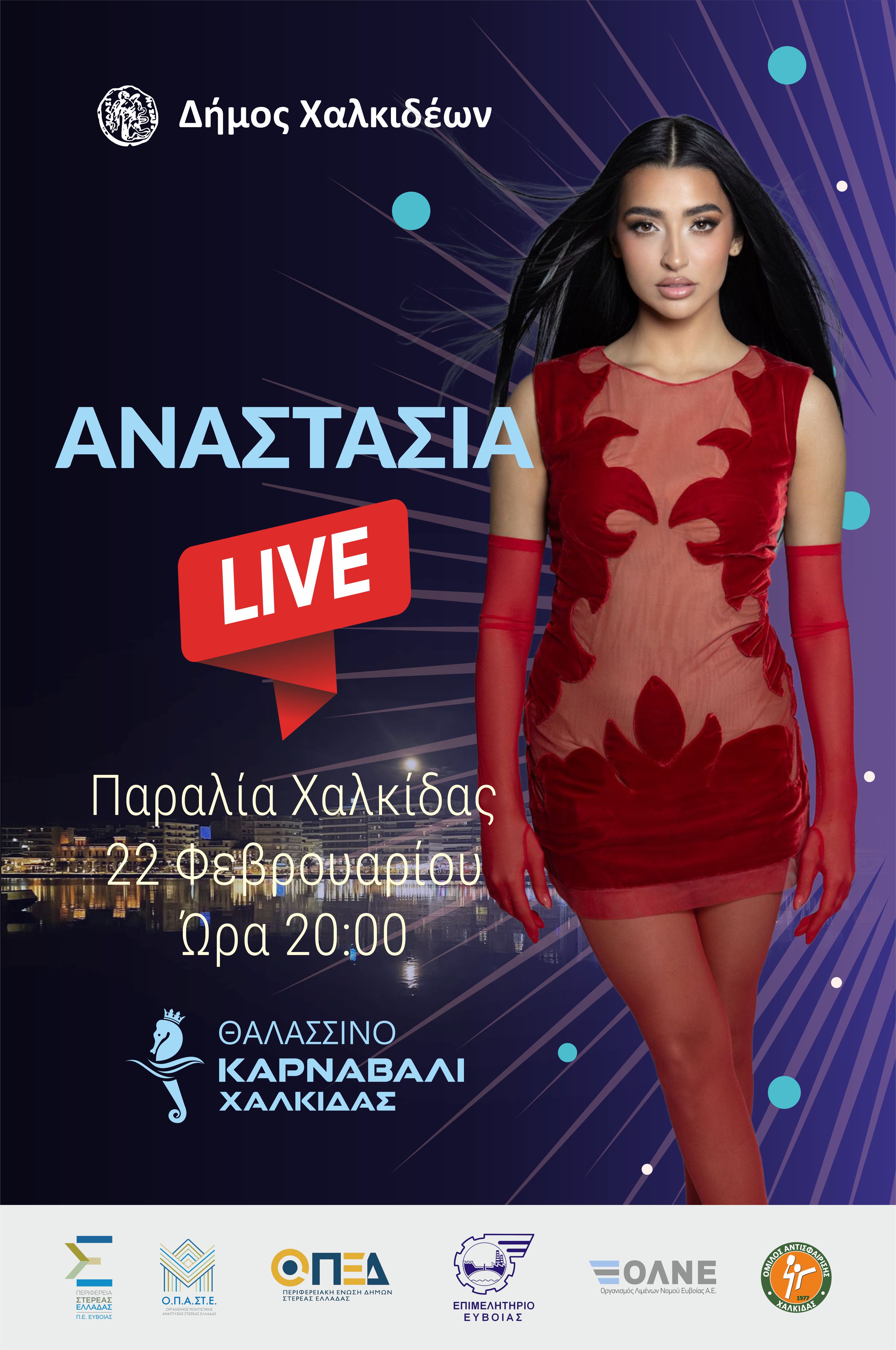 🎤Μετά τον Βασιλιά Καρνάβαλο, η σκηνή παίρνει «φωτιά», με την Αναστασία σε μια εκρηκτική συναυλία δίπλα στη θάλασσα, η οποία έρχεται να δώσει το απόλυτο φινάλε με γνωστές επιτυχίες, αστείρευτο κέφι και ανεξάντλητη ενέργεια.
