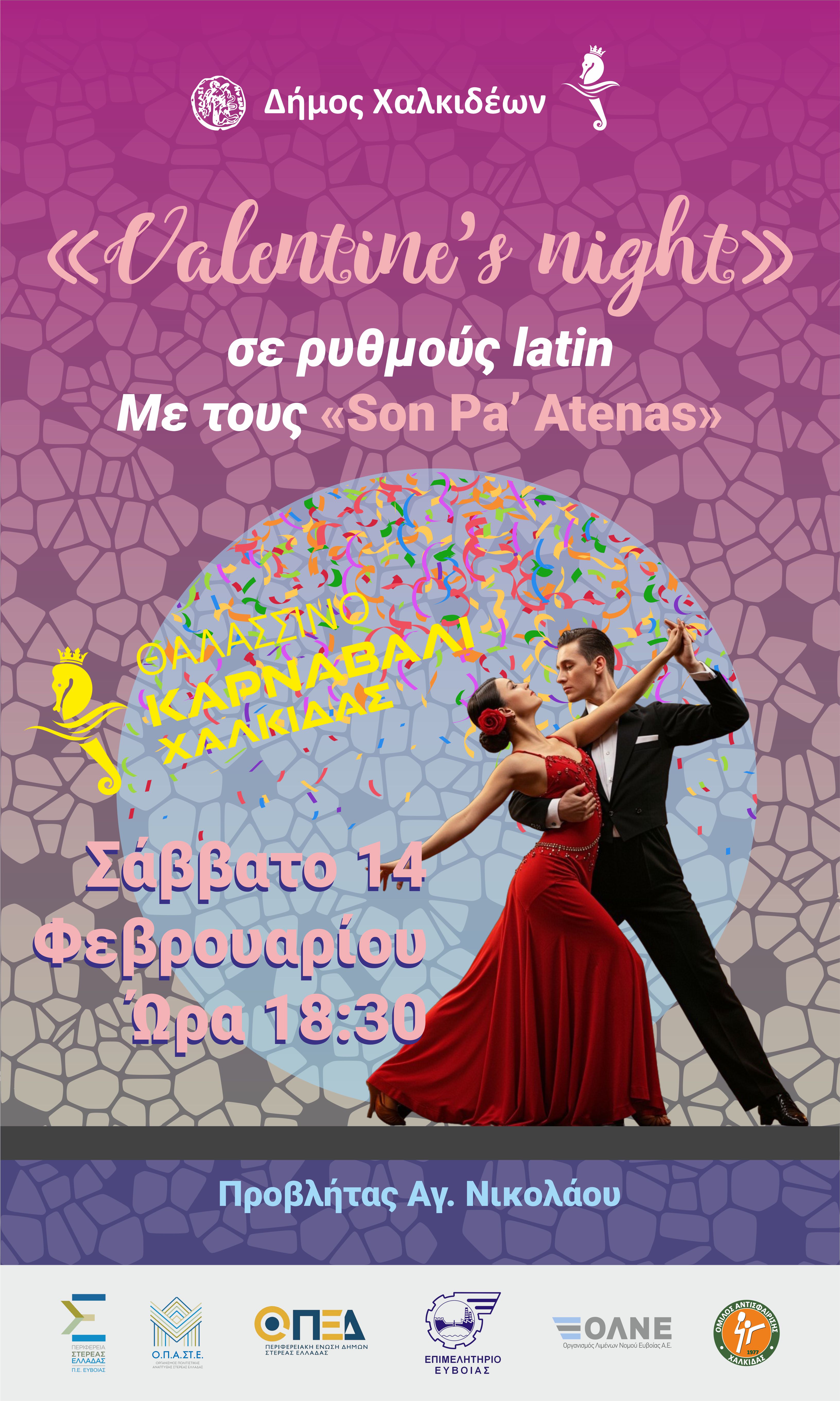 Single, taken ή «it’s complicated» – όλοι είναι καλεσμένοι στο «Valentine’s Night», όπου οι ρυθμοί της Λατινικής Αμερικής συναντούν την Ευρώπη, μαζί με τους «Son Pa’ Atenas», ένα Latin Quartet, που ένωσε την Ελλάδα, την Κούβα, την Κολομβία και το Περού και αποτελείται από τους Seidel Borges, Σταύρο Λινό, Pedro Fabian και Julian Bernal.