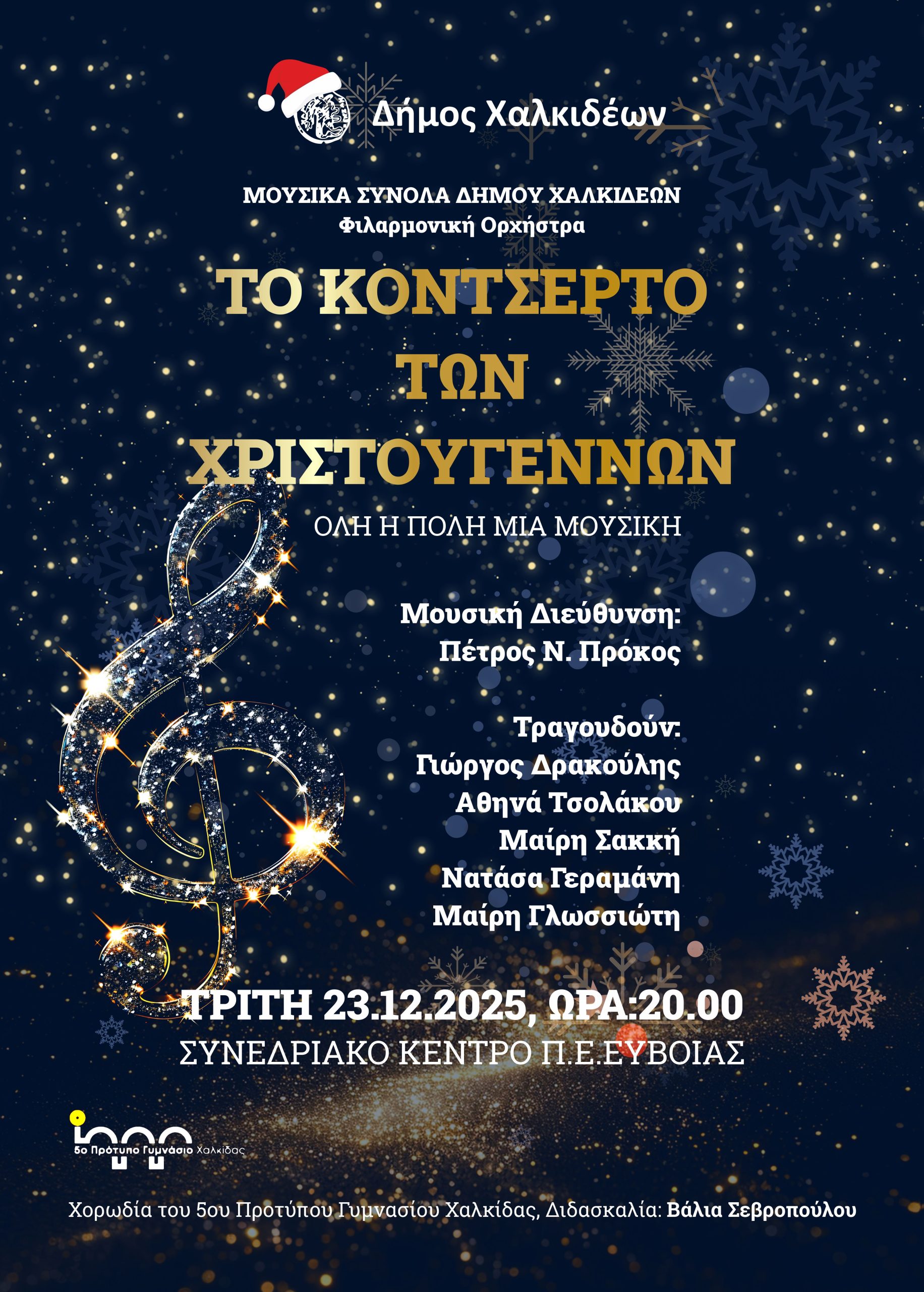 🎵Δημότες και επισκέπτες του Δήμου Χαλκιδέων καλούνται να «φορέσουν» την εορταστική τους διάθεση και να απολαύσουν ένα γεμάτο μουσικό πρόγραμμα, την Τρίτη 23 Δεκεμβρίου 2025 και ώρα 20:00, στο Συνεδριακό Κέντρο της Περιφερειακής Ενότητας Εύβοιας, που υπόσχεται να «ζεστάνει» τις καρδιές όλων.