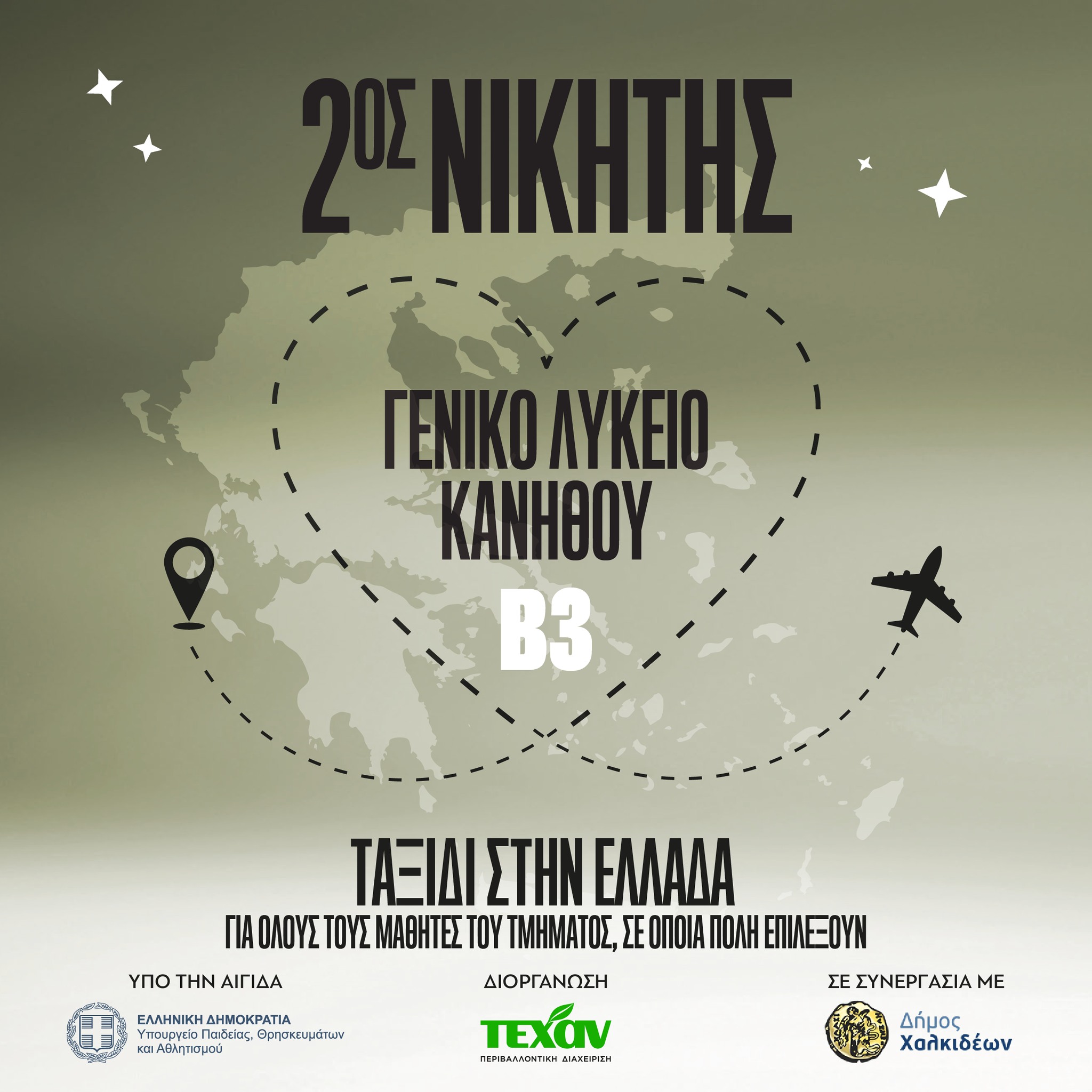 Έπαθλο: Ταξίδι 5 ημερών, για όλους τους μαθητές του τμήματος, σε όποια πόλη της Ελλάδας επιλέξουν
