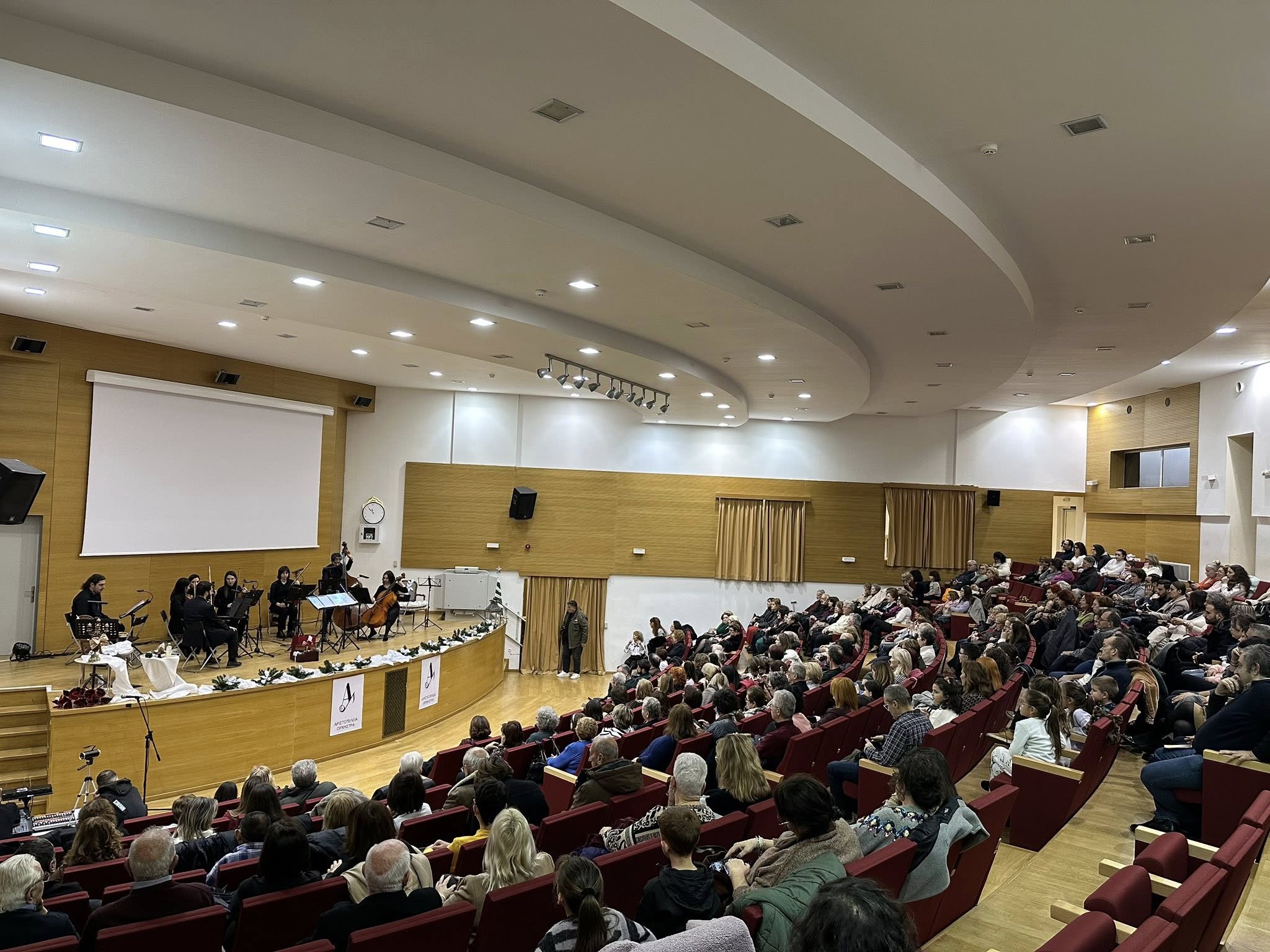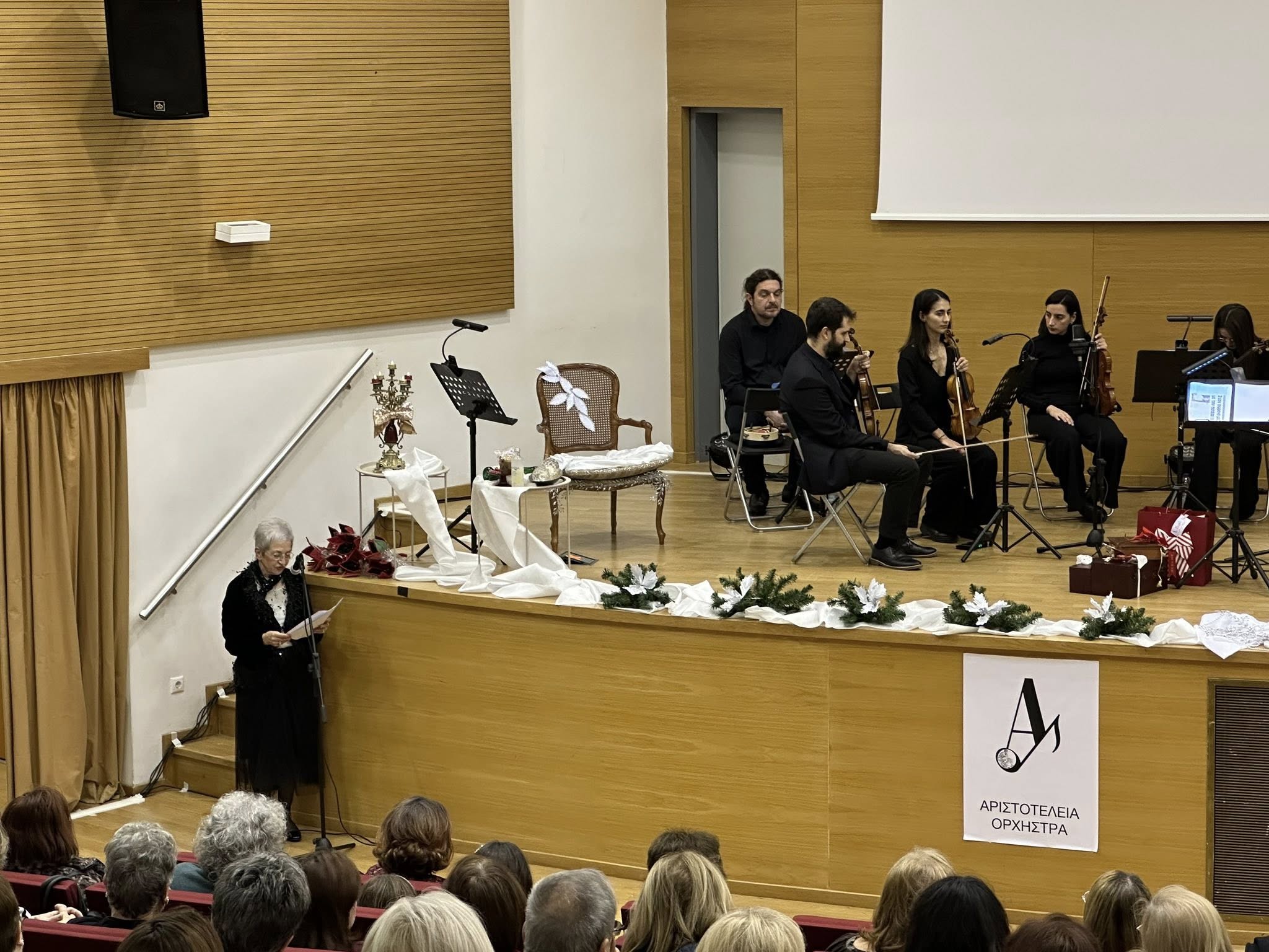 🎄Το κοινό ταξίδεψε νοερά στη Χριστουγεννιάτικη Βιέννη και την Πρωτοχρονιάτικη Νέα Υόρκη, απολαμβάνοντας βιεννέζικα βαλς, αριστουργηματικές χριστουγεννιάτικες μελωδίες και ταγκό, μέσα από μια παραγωγή με έντονο καλλιτεχνικό και κοινωνικό αποτύπωμα, μέσα από τις μουσικές της Αριστοτέλειας Ορχήστρας Εγχόρδων, υπό τη Διεύθυνση της πιανίστα Βάνας Παπαϊωάννου, την αφήγηση του ηθοποιού Γιάννη Παπαγιάννη και των Ηρώς Παπαγεωργίου και Έλενας Φωτιά.